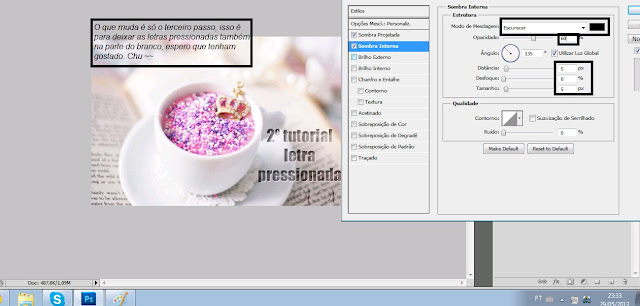 Terceiro Passo é esse, é em sombra interna, luz indireta, cor preta e o resto veja na imagem